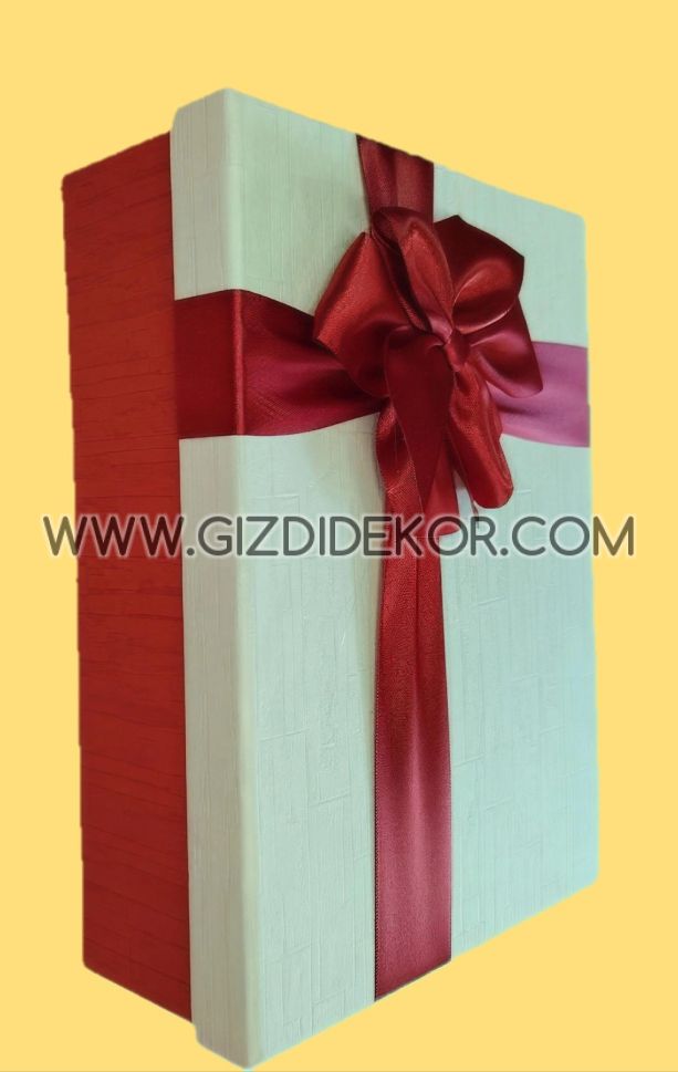 Стилна подаръчна кутия, идеална за всеки повод – рожден ден, годишнина, сватба, Коледа или Свети Валентин. Кутията е изработена от висококачествен картон с елегантна текстура. Капакът е в цвят екрю, украсен с красива сатенена панделка в червено, която придава изискан и празничен вид.