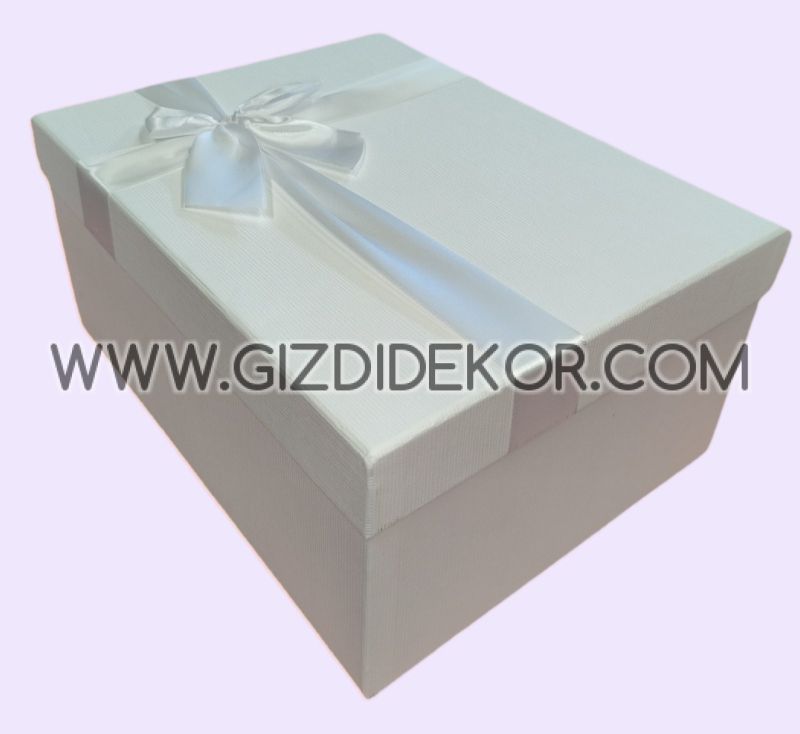 Стилна подаръчна кутия, идеална за всеки повод – рожден ден, годишнина, сватба, Коледа или Свети Валентин. Кутията е изработена от висококачествен картон с елегантна текстура. Капакът е снежно бял, украсен с красива сатенена панделка в бяло, която придава изискан и празничен вид.
